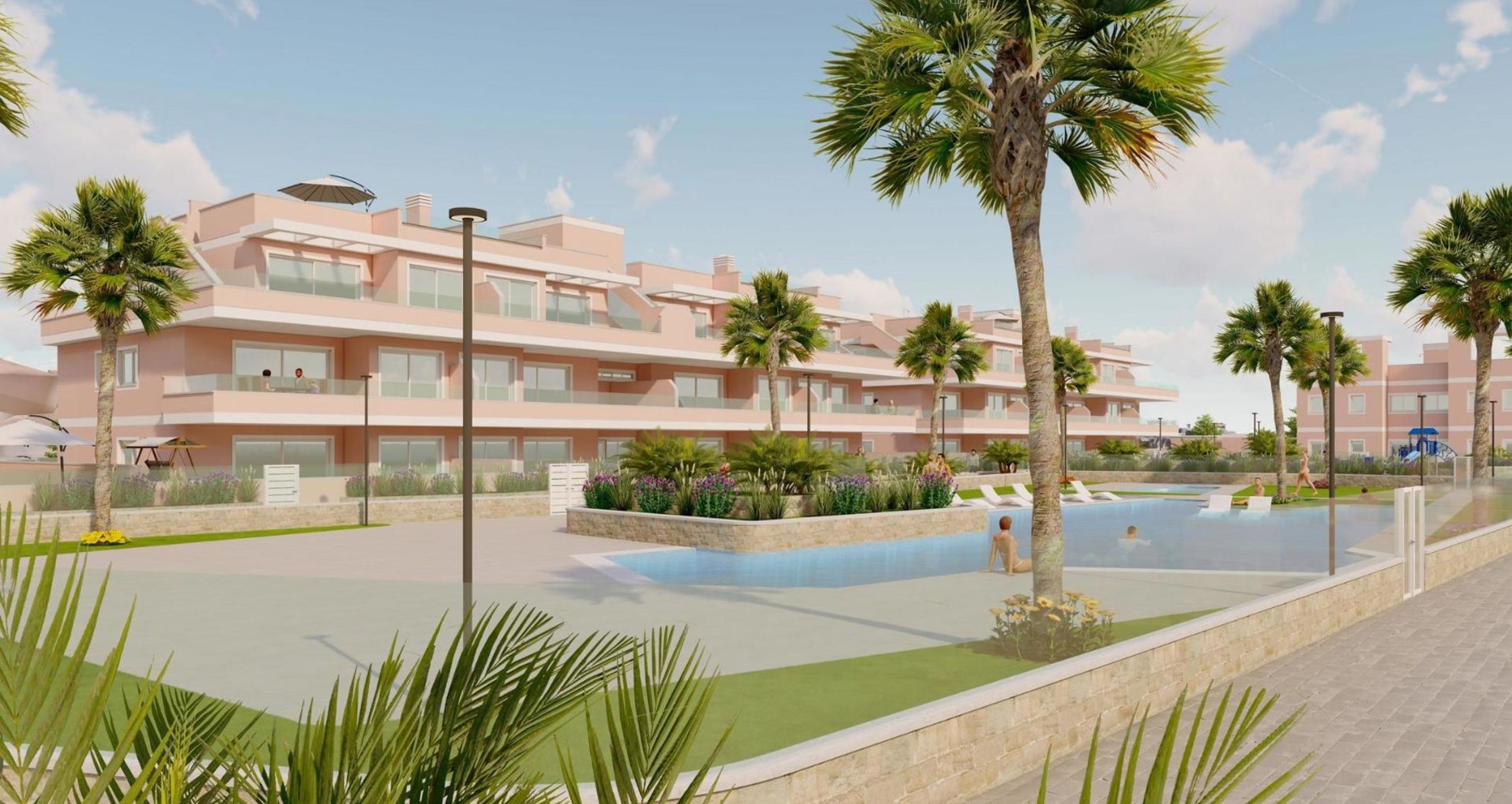 Het project heeft ruime gemeenschappelijke ruimten, waaronder een gemeenschappelijk zwembad, aangelegde tuinen en een kinderspeelplaats, ideaal voor het hele gezin.