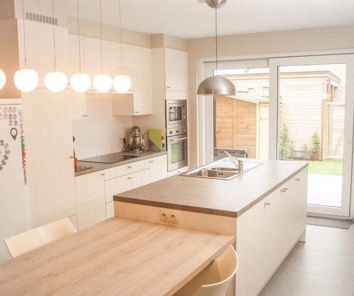 Keuken geeft uit op terras en klein tuintje.