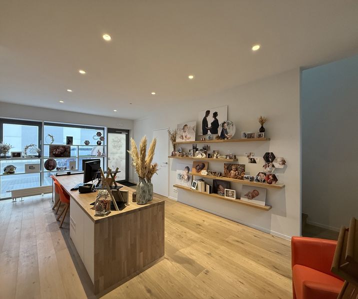 - gelijkvloers (126m2): ontvangst- en bureauruimte (42m2) met vast bureaumeubilair, ingemaakte kasten, kitchenette en parketvloer - berging - toilet + douche - galerij/bureau (40m2) met vrije hoogte van 6,7m - berging (8,5m2) - bureau/studio (29m2) met vrije hoogte van 4m30