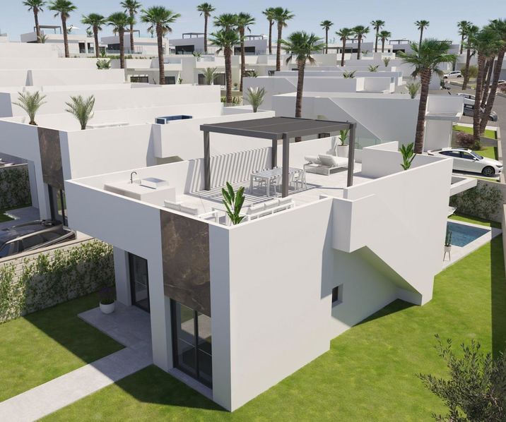 Nieuwe villa's in La Finca Golf course, Algorfa. De woningen worden gebouwd met een verdieping en bestaan uit 3 slaapkamers, 2 badkamers, open keuken, de woonkamer met open uitzicht op het terras, solarium, prive tuin met het zwembad en parkeerplaats.