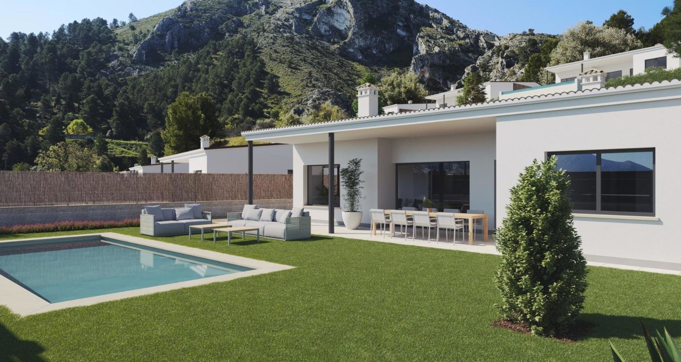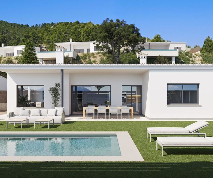Nieuwbouwwoningen in Penáguila Rust en natuur in het hart van de Sierra de Aitana, Alicante. Ontdek een uitzonderlijke kans om te wonen midden in de natuur in een rustige omgeving met een prachtig uitzicht op de bergen. Dit nieuwe project van 35 gelijkvloerse villa's ligt naast het charmante dorpje Penáguila, genesteld in het hart van de Sierra de Aitana in Alicante. Met royale percelen van 800 m² bieden deze woningen privacy, comfort en direct contact met de natuurlijke omgeving.